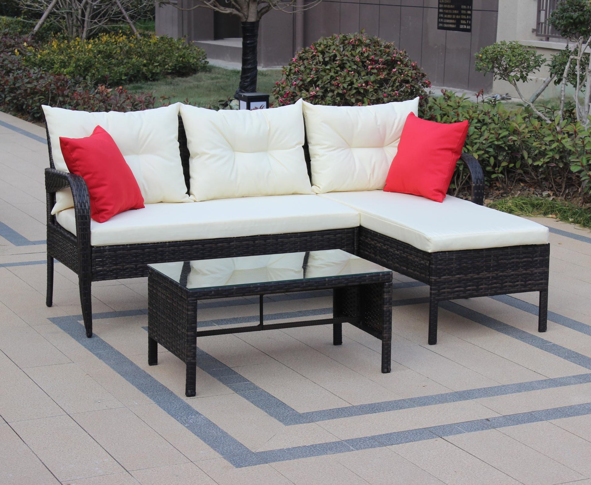 Outdoor patio Furniture sets 3 piece Conversation set wicker Ratten Sectional Sofa With Seat Cushions(Beige Cushion)