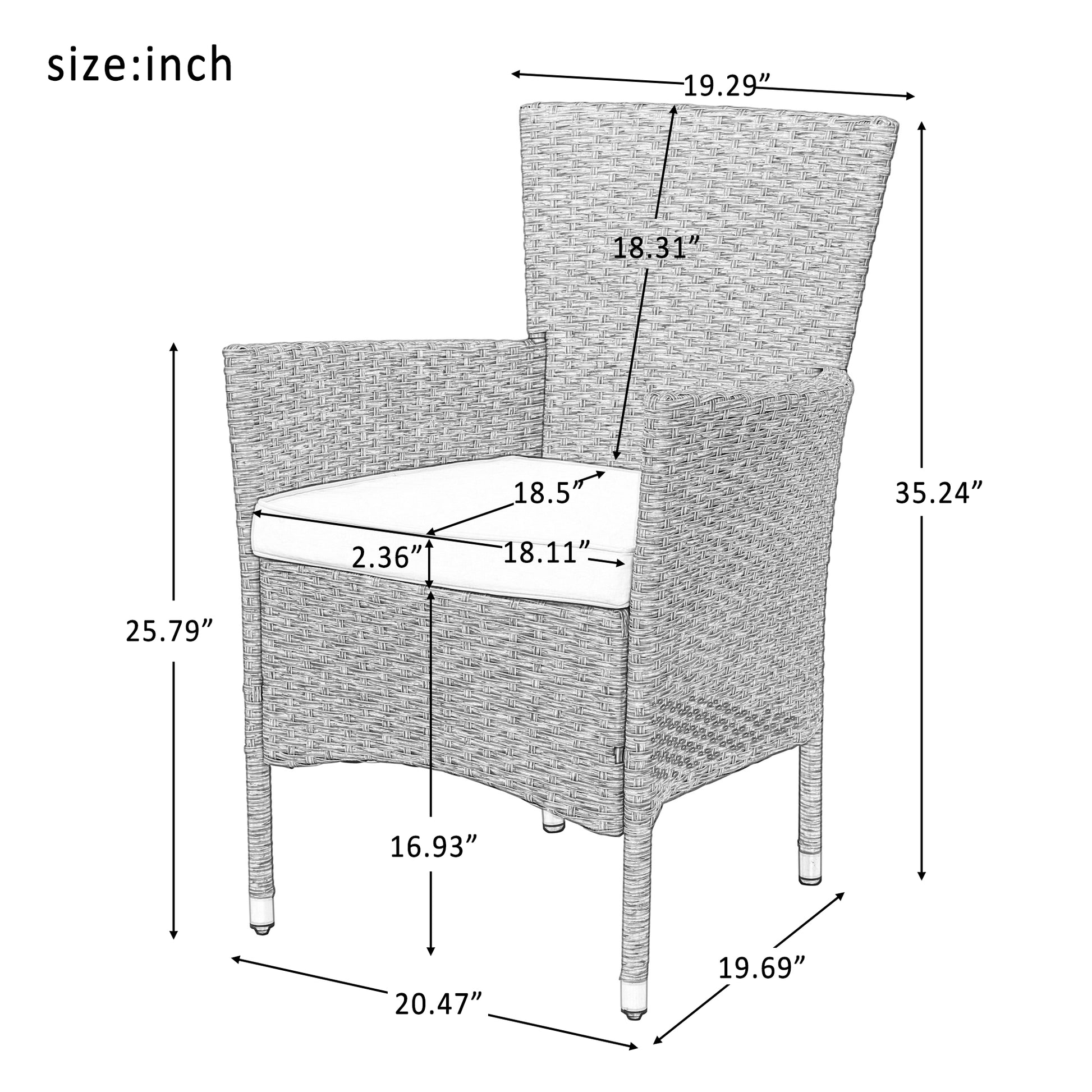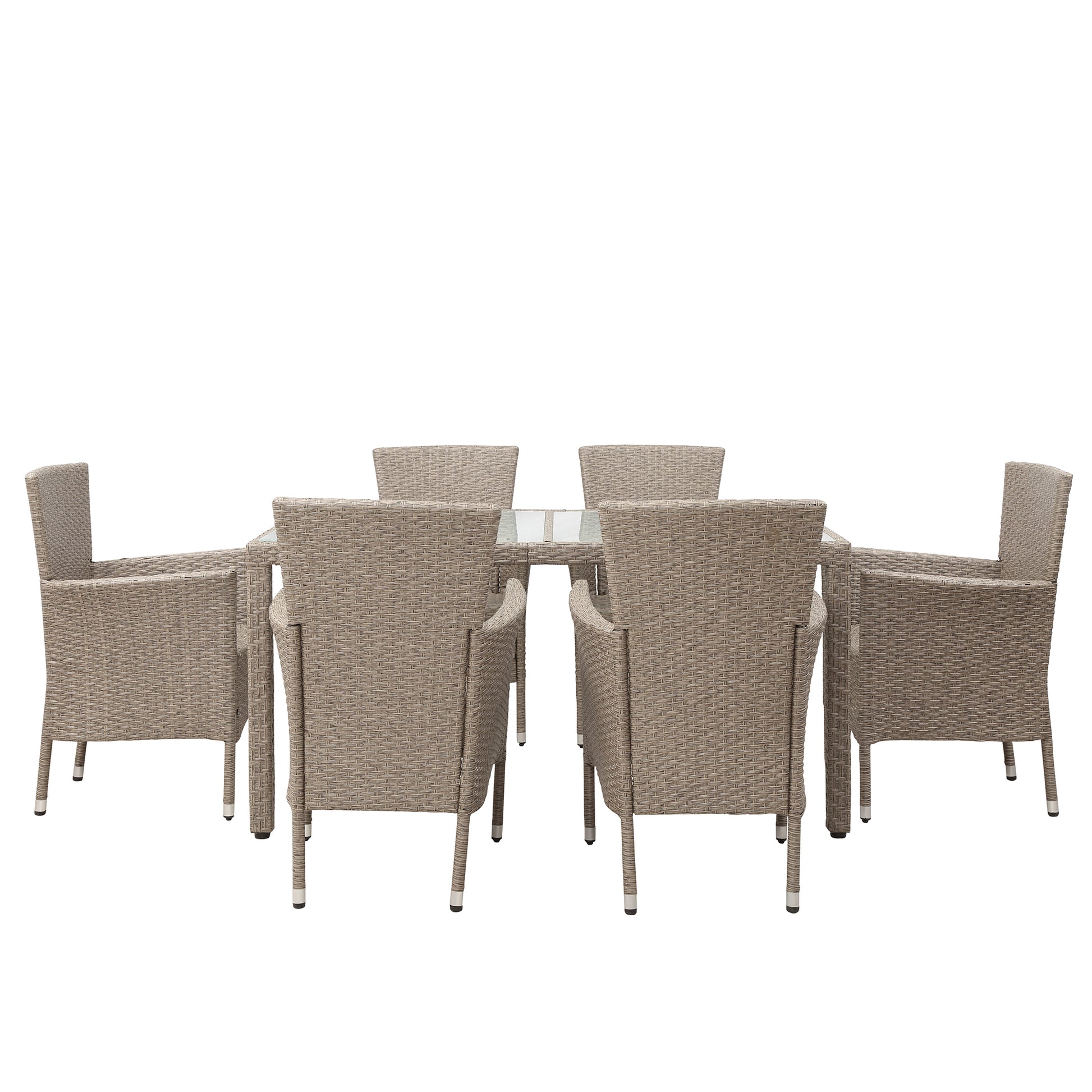 Outdoor Wicker Dining Set, 7 Piece Patio Dinning Table Beige-Brown Wicker Furniture Seating (Beige Cushions)