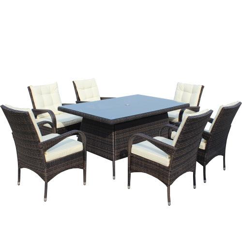Patio 7-Piece Rectangular Dining Set with 6 Dining Chairs (Brown &Beige Cushion )