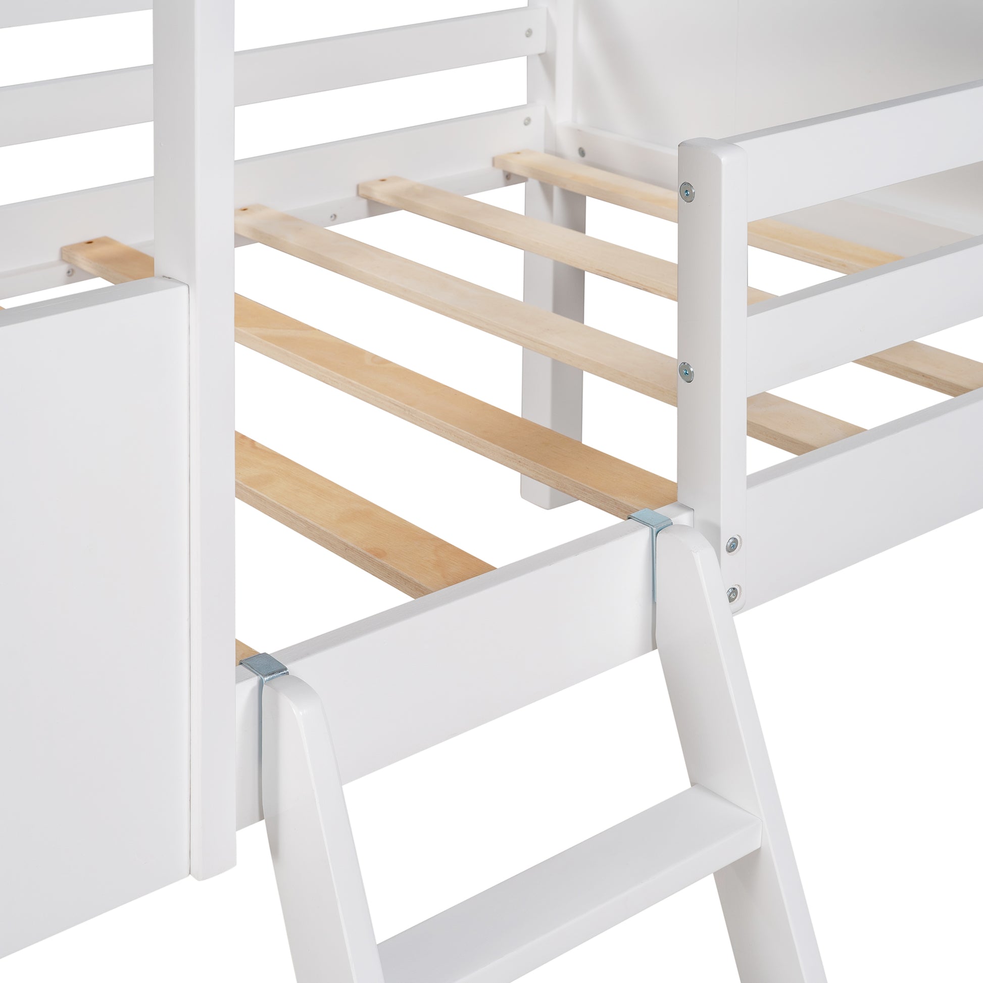 Twin Size Low Loft Wood House Bed with Two Side Windows, for Kids, Teens, Girls, Boys, (Normal Gray+Normal White)